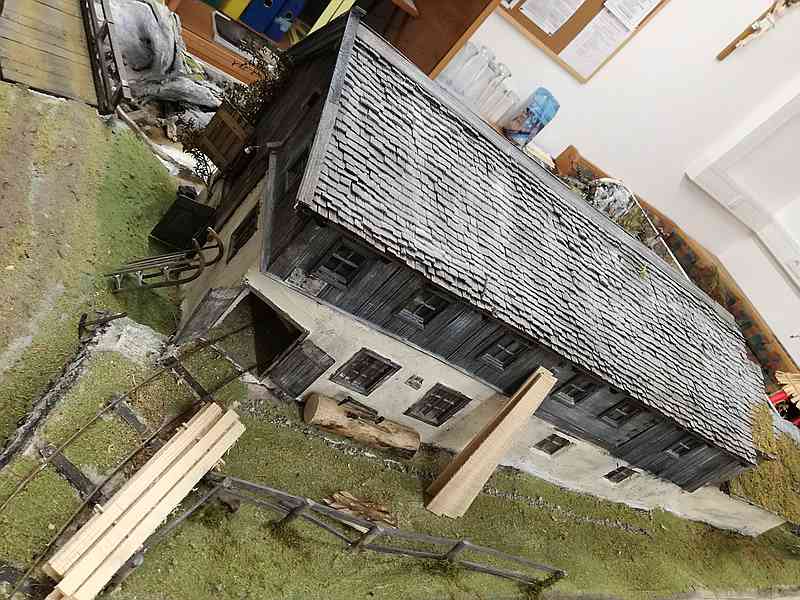 einfach fantastisch was ihr da geschaffen habt.Das wirkt alles so realistisch und nah am Original das man wirklich oft zweimal kucken muss um Original und Modell zu unterscheiden.Die Innenaufnahmen sind so genial das man wirklich glaubt in der Säge zu stehen,allein schon durch die stimmungsvolle Ausleuchtung.Man hört förmlich die Säge rattern. Auf dem Fahrweg zur Brücke könnte ich mir noch gut nen alten Traktor vorstellen z.B. den Ferguson von Heller oder den Porsche von Revell.