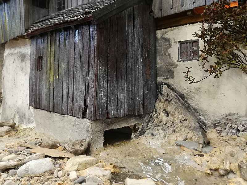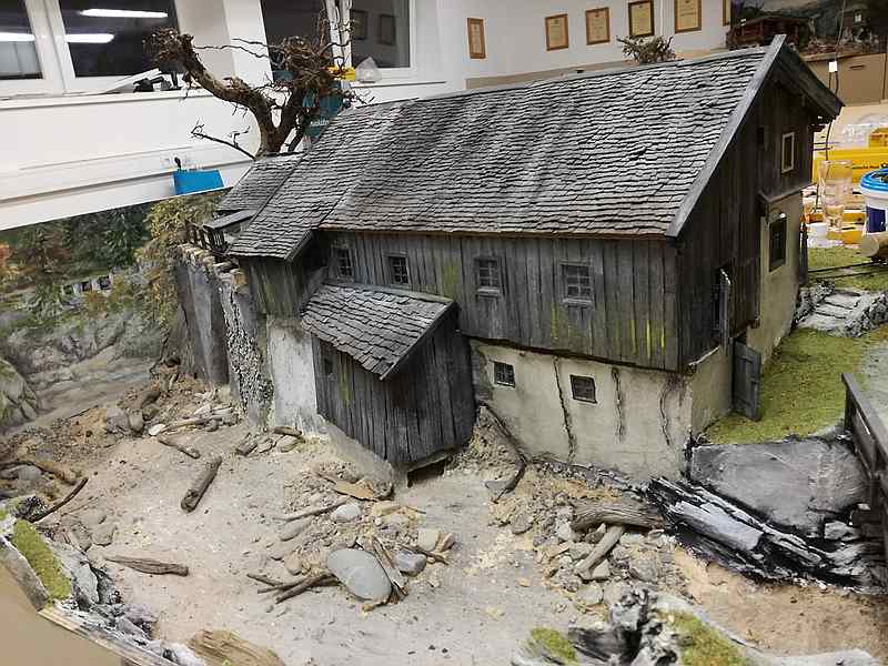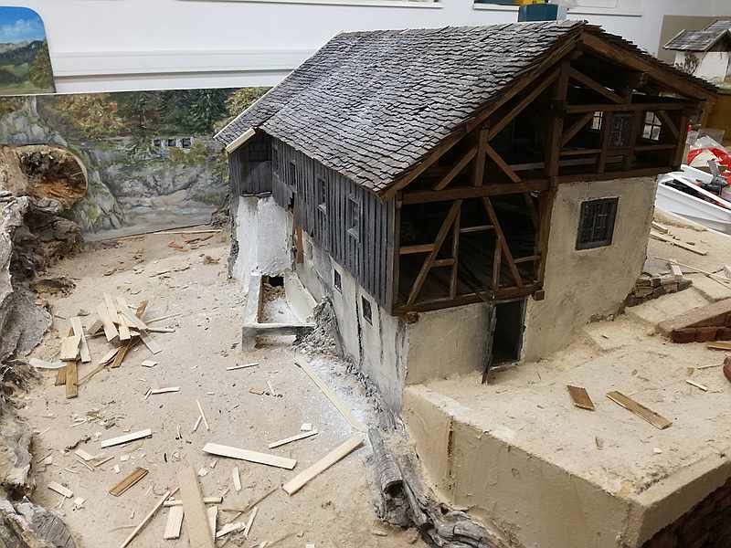 Ja, Wasser wird sicher auch noch eingelassen! Die Trockenperiode soll gleich vorbei sein und dann geht's ans Bretter schneiden! :party: Spaß bei Seite - ist natürlich kein Funktionsmodell, das wäre dann doch zu aufwendig geworden. :cracy: