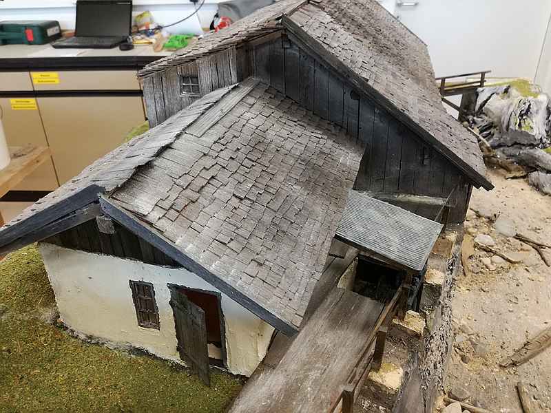 und dann mit Baum und einem wichtigen Detail: Wenn Bäume so über die Dächer ragen, so sind diese dann meist voller Moos! Es hätte hier sicherlich noch viel mehr vertragen, aber gleich wie bei den gelben Flechten....weniger ist oft mehr ;) :)