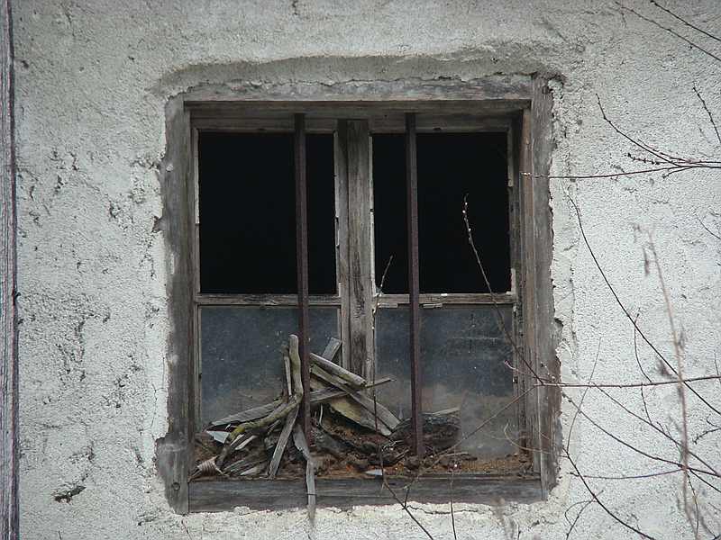 Das hinterste Fenster bachseitig im Original...(hier liegt tatsächlich Schwemmholz am Fensterbrett 8o !).