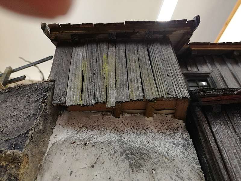 Die fehlenden Fensterscheinungen im ersten Stock noch schnell angebracht und mit der Beizerei wieder gewartet bis alles trocken ist.