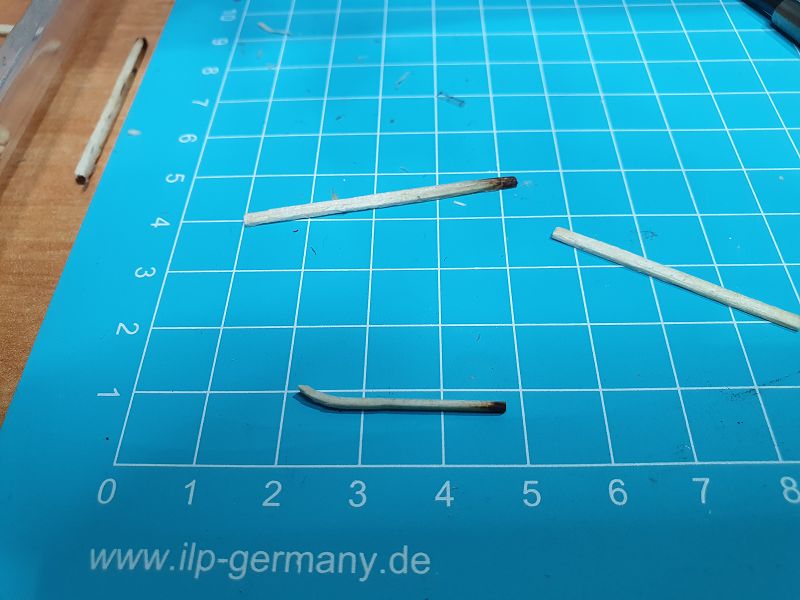 Auch nach langen grübeln kann ich mich immer noch nicht zu farbliche Akzente entschließen. Aber es gibt da vielleicht eine andere Möglichkeit die Barkhölzer deutlicher hervorzuheben. Wie wäre es die Barkhölzer aus Streichhölzer ohne (abgebrannten) Kopf herzustellen. Also mal schauen.