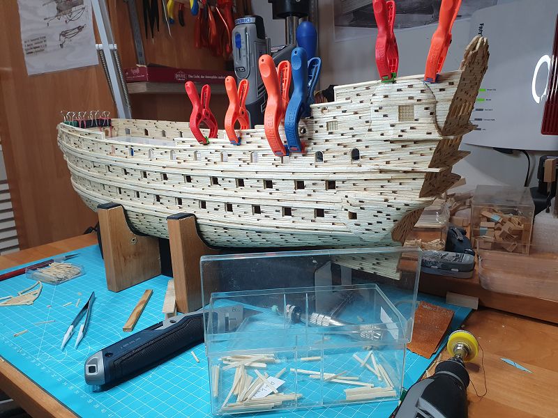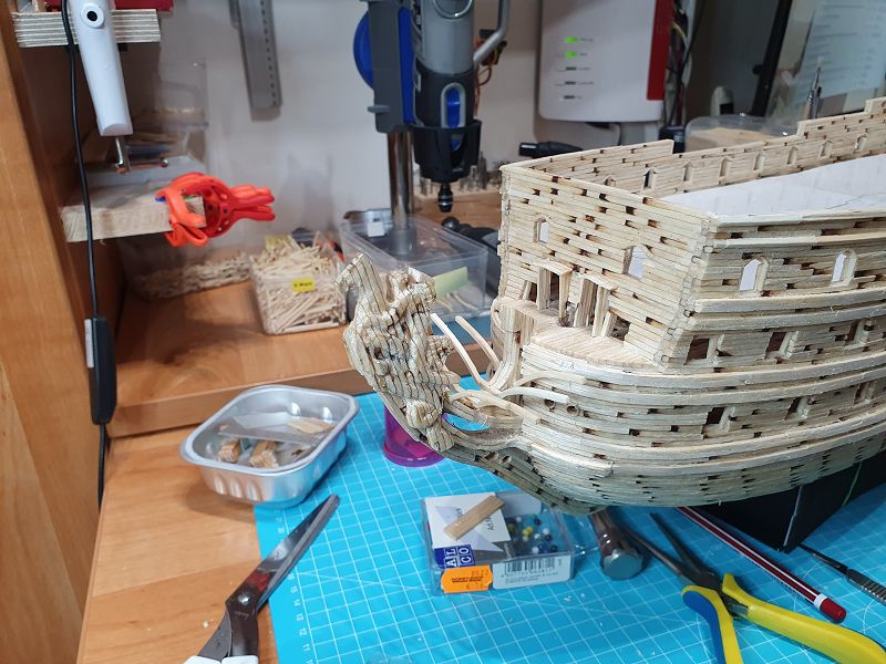 Ich denke als nächstes werde ich am Gallion weiter machen. Danach die Seitenleisten und anschließend die Balkone.