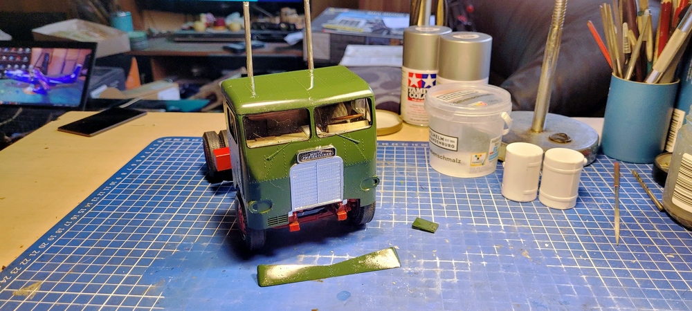 Nun noch die restlichen Zubehörteile einkleben und dann rein damit in die Kabine.