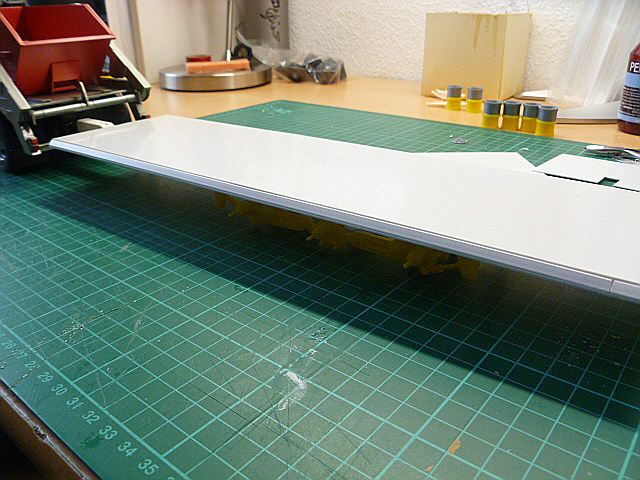 Seitliche Verkleidung und Stoßstange mit Leuchtenträger, das ganze muß jetzt noch gespachtelt und geschliffen werden.