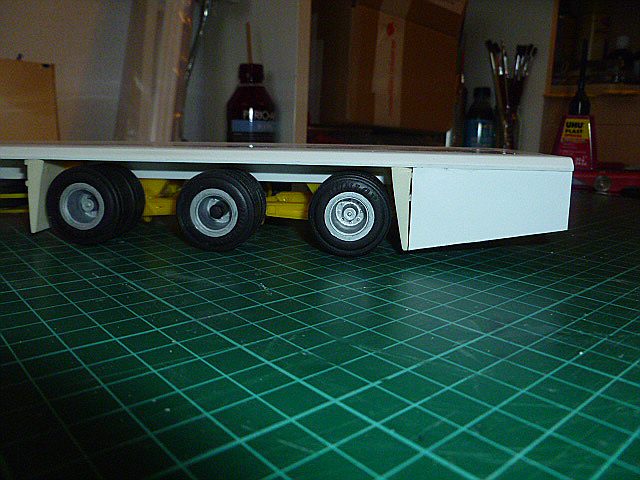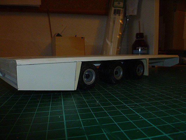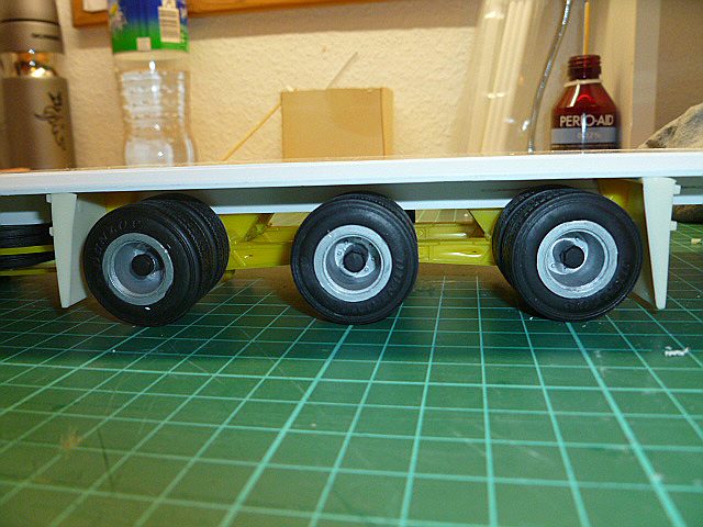 so und ein wenig weiter ging es heute auch der Anhänger hat seine Kotflügel bekommen und die Bausatzfelgen wurden ein wenig überarbeitet.
