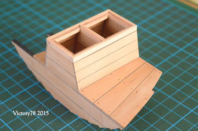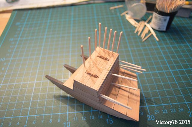 Da die offene Seite des Rumpfes den Einblick in das Binnenboot ermöglicht, habe ich auch am Bünndeck eine Partition offen gelassen.