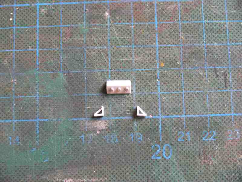 Dann ging es ans Bohren und Feilen, auch hatte ich mir schon mal vier Röhrenstäbe zugeschnitten, 1x 2mm Durchmesser und 3x 3mm Durchmesser, etwas länger als gebraucht. Sie geben dem ganzen von Anfang an mehr Stabilität, auch sind sie etwas länger als benötigt, das wurde später angepasst.