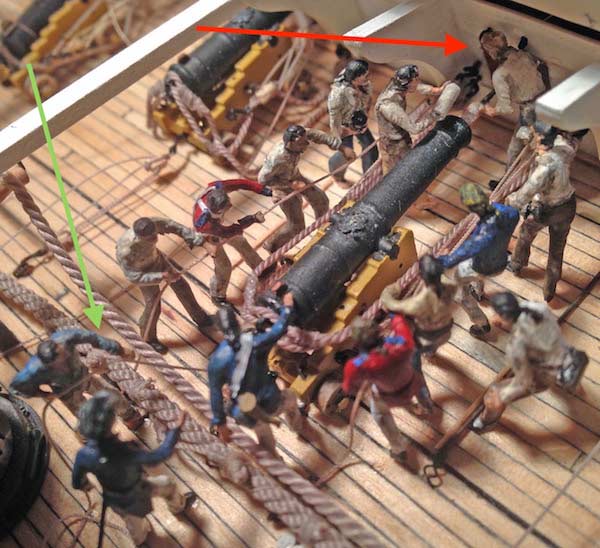 Nun habe ich an diesem Wochenende auf dem unteren Batteriedeck auf der Backbordseite 14 Stück fertig getakelt.