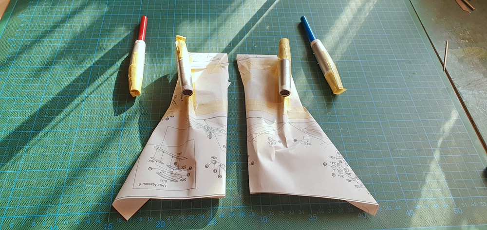 , wurden einfach die Bausatz Kabinendächer, dafür genommen. Die wurden mit je zwei Tropfen Schmucksteinkleber, am Rumpf befestigt.