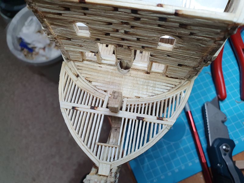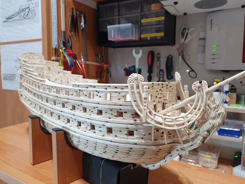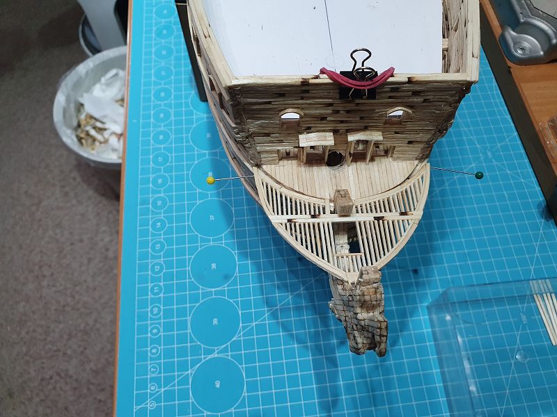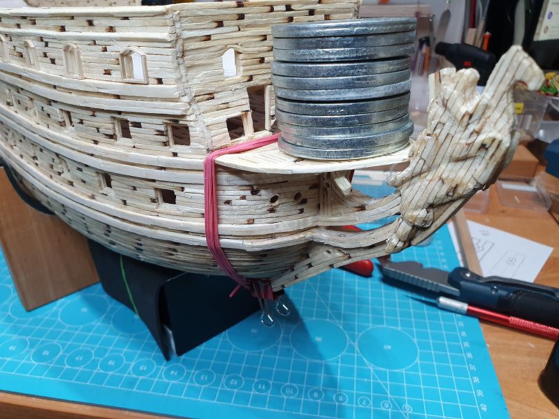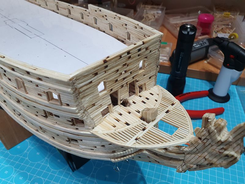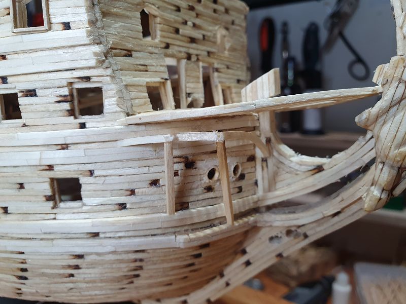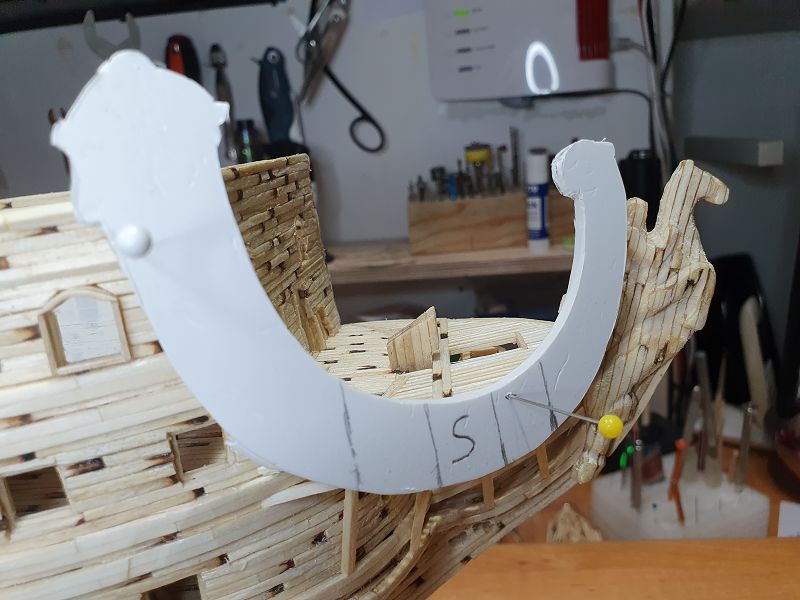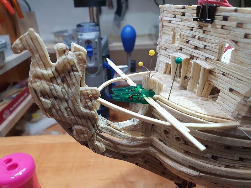 Trotz sorgfältig arbeiten am Gallionsgräting passt es nicht so wirklich. Besser wäre es wohl nur geworden wenn ich es