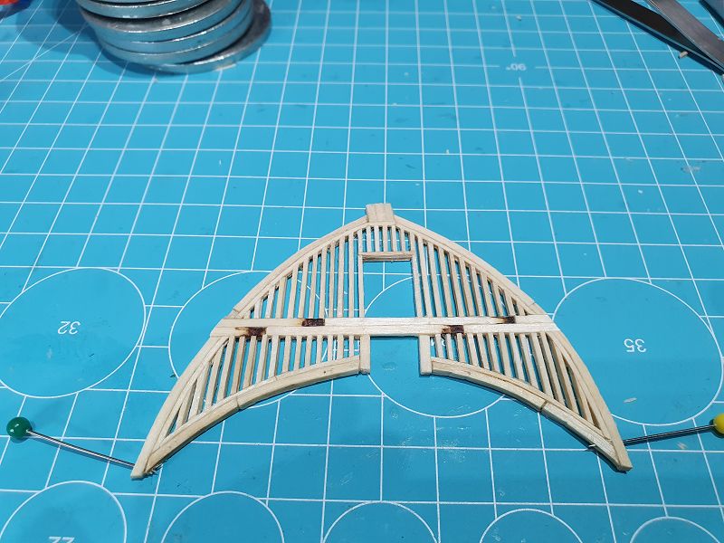 Die Querstrebe habe ich diesmal aus halbierten Hölzern gemacht