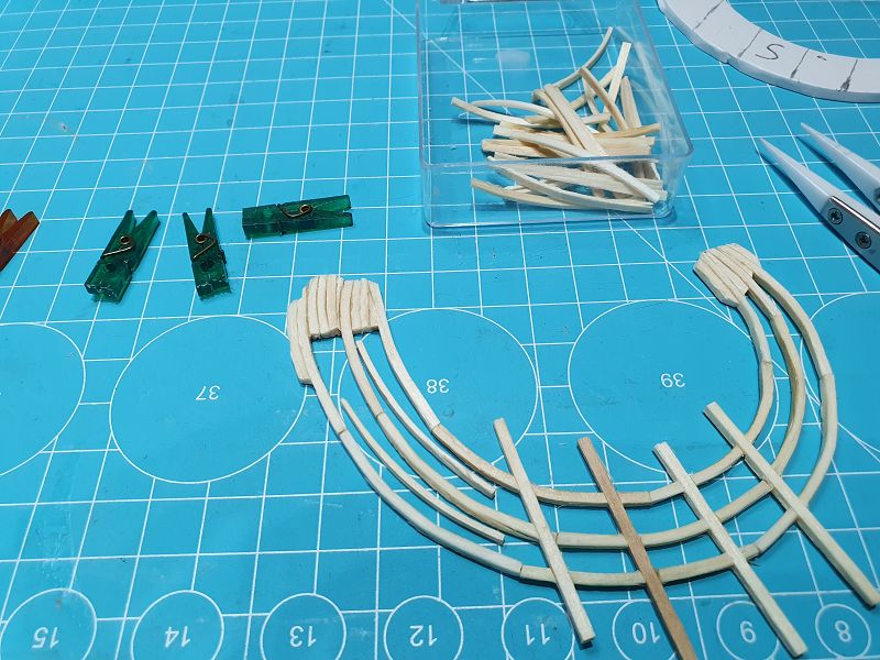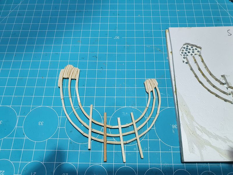 Zuerst mal genug Streichhölzer biegen. Hier die 1 mm X 2 mm Version