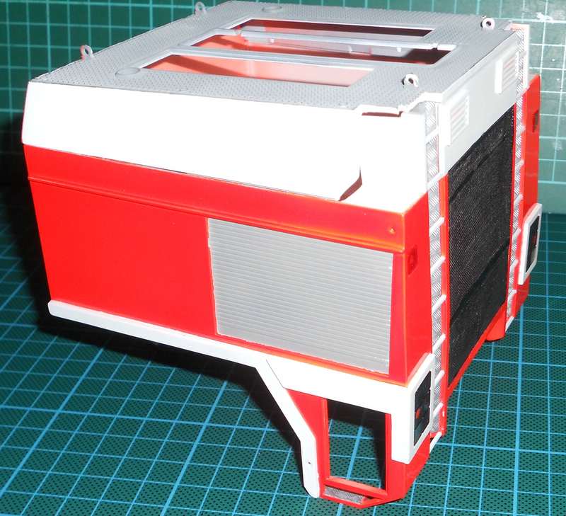 Im vorderen Modul habe ich das Gitter eingesetzt und die Gerätekästen haben auch schon etwas Farbe abbekommen.