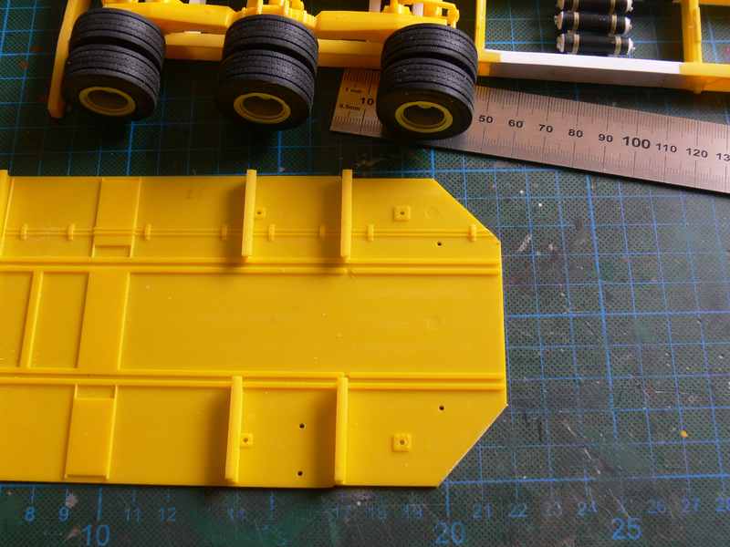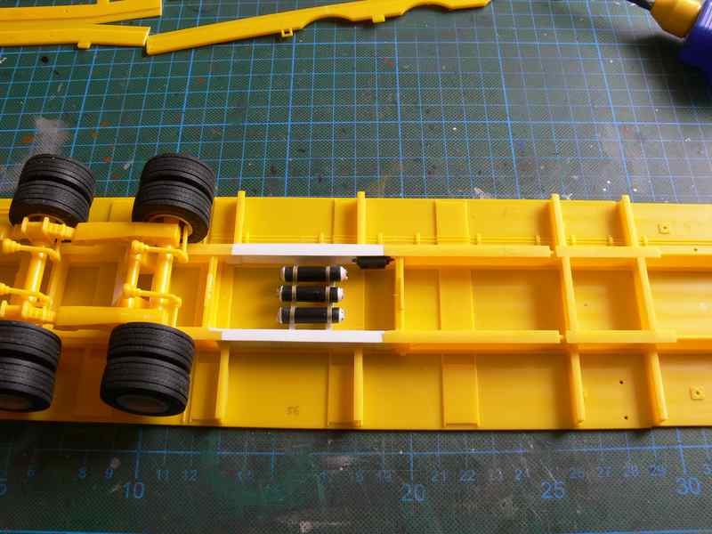. Bei meinem Container-Chassis, ein Europäer, sind die Tanks jedenfalls größer und quer vor den Achsen.