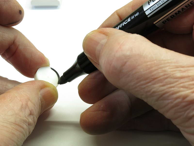 Dann wurden die Ränder der beiden Rundprofile mit der gespaltenen Spitze des Edding angemalt, sauber und gleichmäßig herumgezogen.