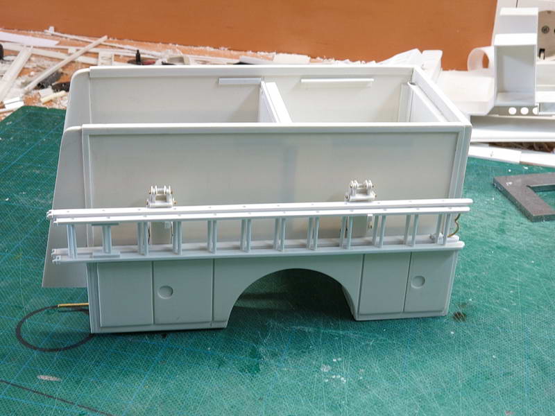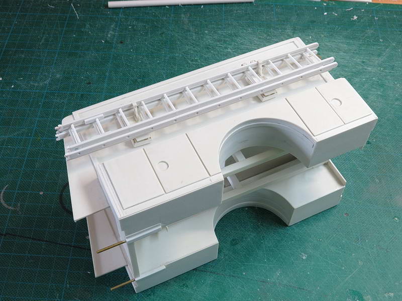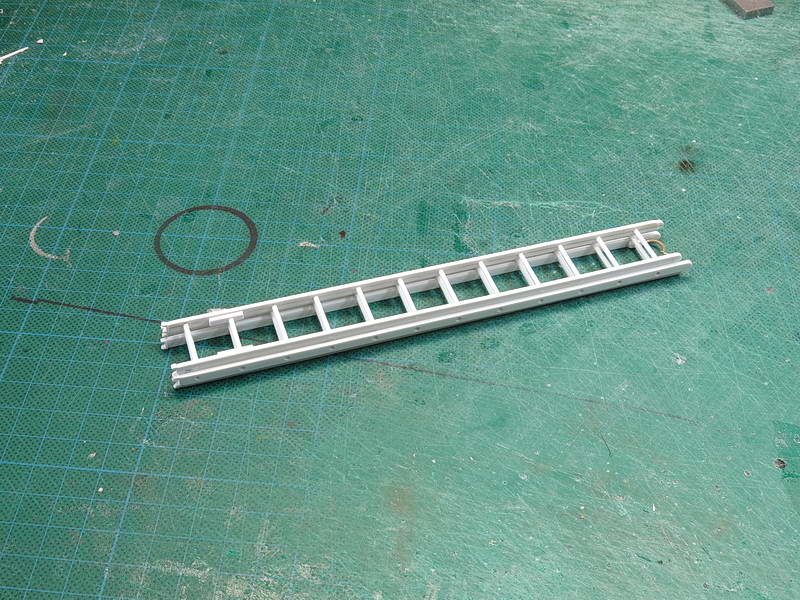 hochgezogen. Dieses bringe ich aber erst nach der Lackierung an. Die einzelne Leiter oben ist eine Hakenleiter,