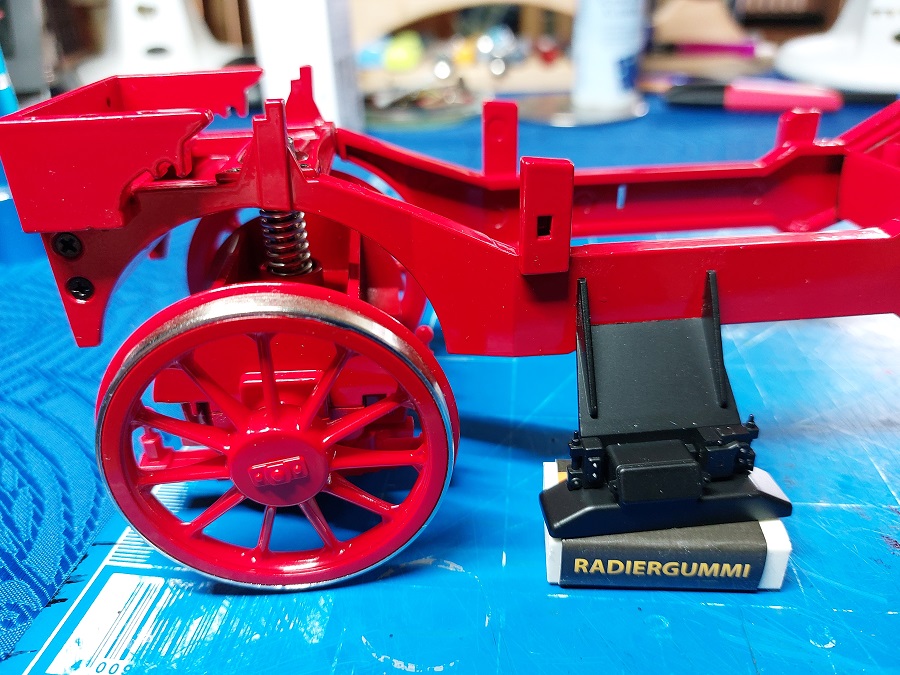 Ich habe nun auch meine Ausgaben erhalten mit Rahmenseiten und dem roten Plastik-Klotz. Also den einfach weglassen ist nicht so ….bin am überlegen wie ich das machen soll mit dem freien Durchblick .Diesen ganzen Schmonzes mit Getriebe ,Motor Sound usw brauche ich einfach nicht ,meine Lok wird ein normales Standmodell in einer Vitrine.Aber dieser Plastik-Klotz halt ja noch einiges zusammen ,wie die Radsätze und so .Werde noch warten auf die nächste Lieferung ,vielleicht kann ich dann mehr erkennen wie ich den weglassen kann (oder auch nicht ,dann muss ich ihn halt Schwarz matt lackieren...diese Lösung kommt aber an letzter Stelle wenn es anders nicht geht).