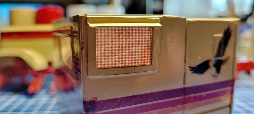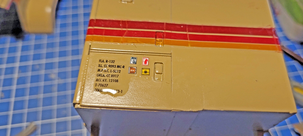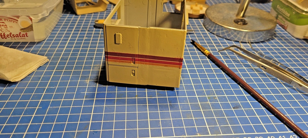 , aber das war ja praktisch die Vorgabe, vom Bausatz. Passend zur Wagenfarbe, gab es Streifen, alles weitere war Sonderlackierung.