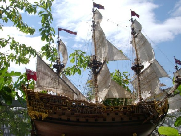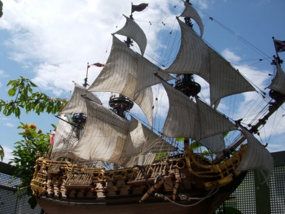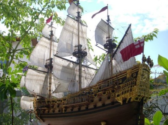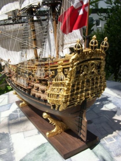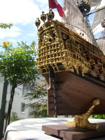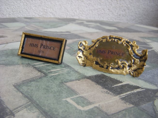 ein zweiter Versuch bezüglich des Namensschild wurde gestartet, ist auf jeden Fall besser geworden als die erste Variante mit den Muscheln da diese zu gross waren. Überzeugt bin ich von dem Schild aber nicht, irgend wie fehlt etwas Schnörkeliges, mal sehen wenn ich die kleinen Muscheln bekomme ob ich damit was machen kann, wenn das nicht klaptt dann kommt aller Voraussicht neu rein Platte mit Schriftzug flach auf dem Brett so wie Chris vorgeschlagen hat. Dann hab ich noch die Strickleiter für das Heck gemacht, da diese mir aber die Heckansicht irgend wie zerstört hat ist es jetzt nur ein Seil mit Knoten geworden, fällt nicht auf ist aber trotzdem da....