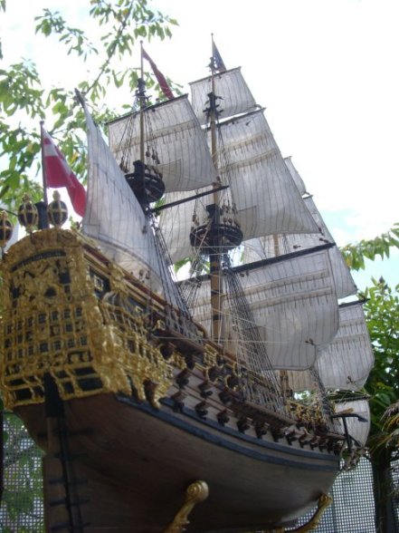 Wenn man sich also an Bilder von Modellen (am besten von dem Modell das man baut) hält und den Bauplan ignoriert erziehlt man schon recht nette Ergebnisse und wenn dann noch zum Schluss wie bei mir Ankerbojen und Strickleiter etc. dran kommen fämgt das ganze an zu "leben". Die Ankerbojen möchte ich heute Abend angehen....mal sehen wie ich es schaffe....