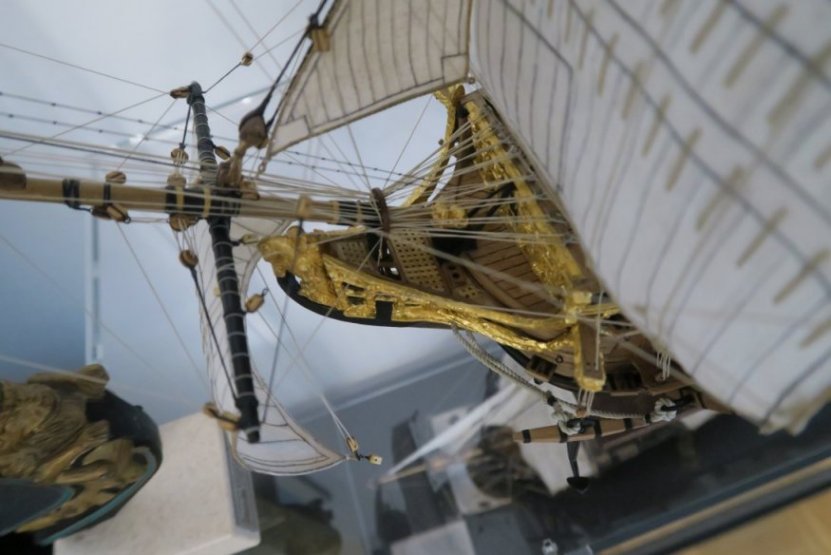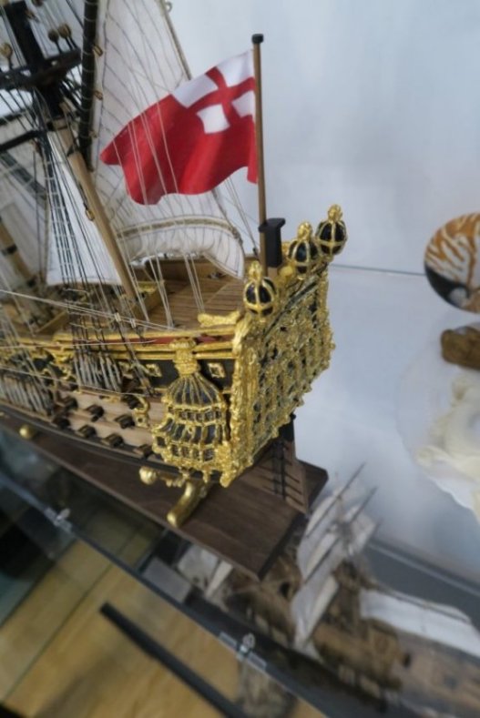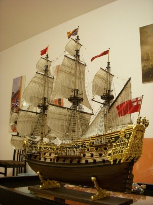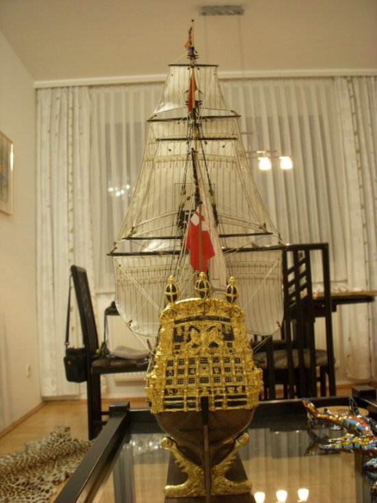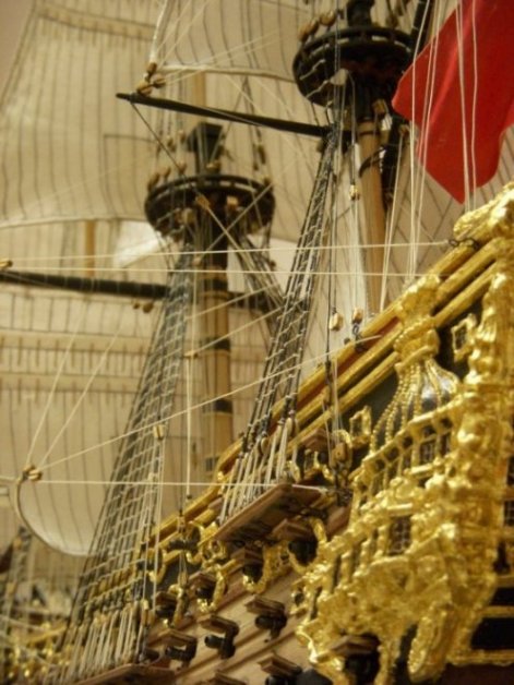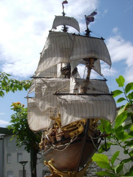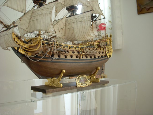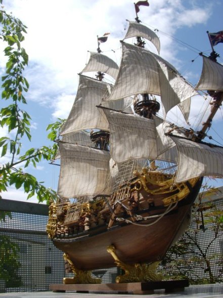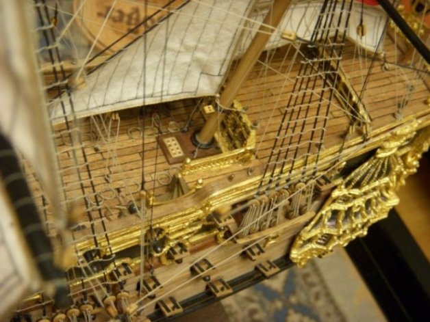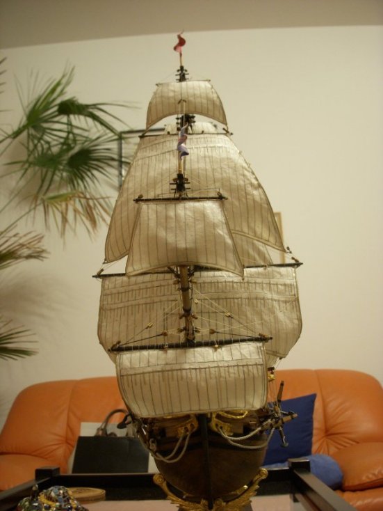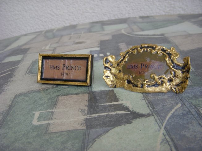 falls Du noch kleine Schnörkelstücke von deinem Modell übrig hast, könntest Du diese vergoldet auf den Rahmen, z.B. auf den Ecken, setzen. Vielleicht würde dies den Eindruck noch weiter verbessern und noch eleganter zum Schiff passen.