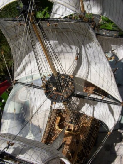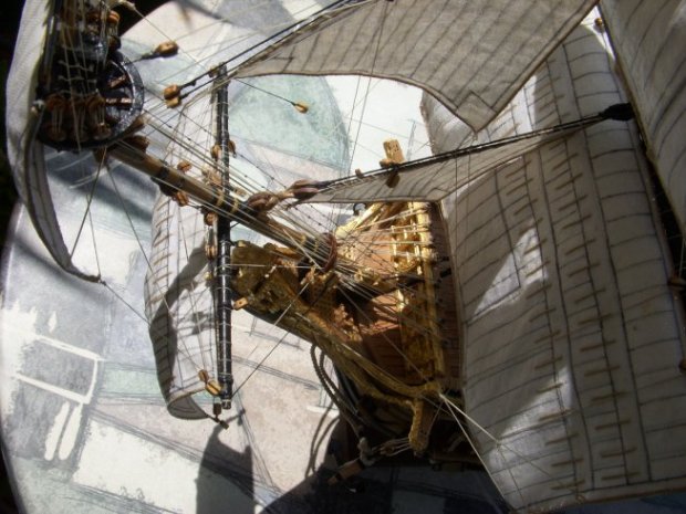 hier nun die Bilder der letzten Takelarbeiten der Segel, es geht um die Takelung der unteren Ecken des Segels vom Bugspritsegel nach hinten hin....ich hoffe man kann es auf den Bildern erkennen...