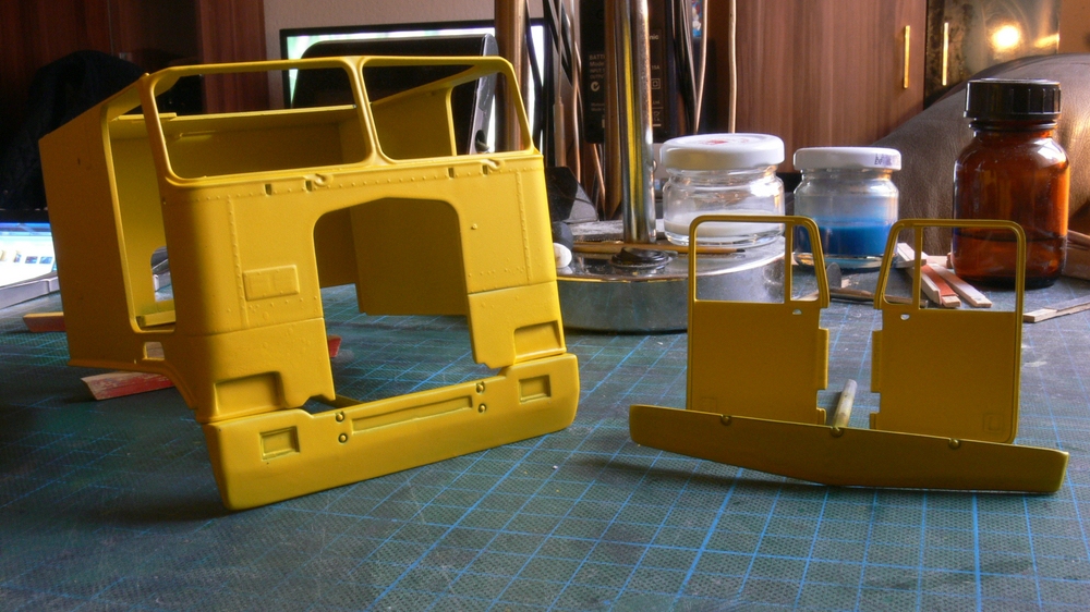 Das wird nun die nächste Aufgabe sein, das alles zu verschleifen, wenn es trocken und fest ist. Danach geht es dann mit der Abschleppbrille weiter, ich möchte erst mal alle Teile soweit zusammenbauen, damit ich dann sehen kann, was vor der Lackierung befestigt wird und was separat lackiert werden muss.