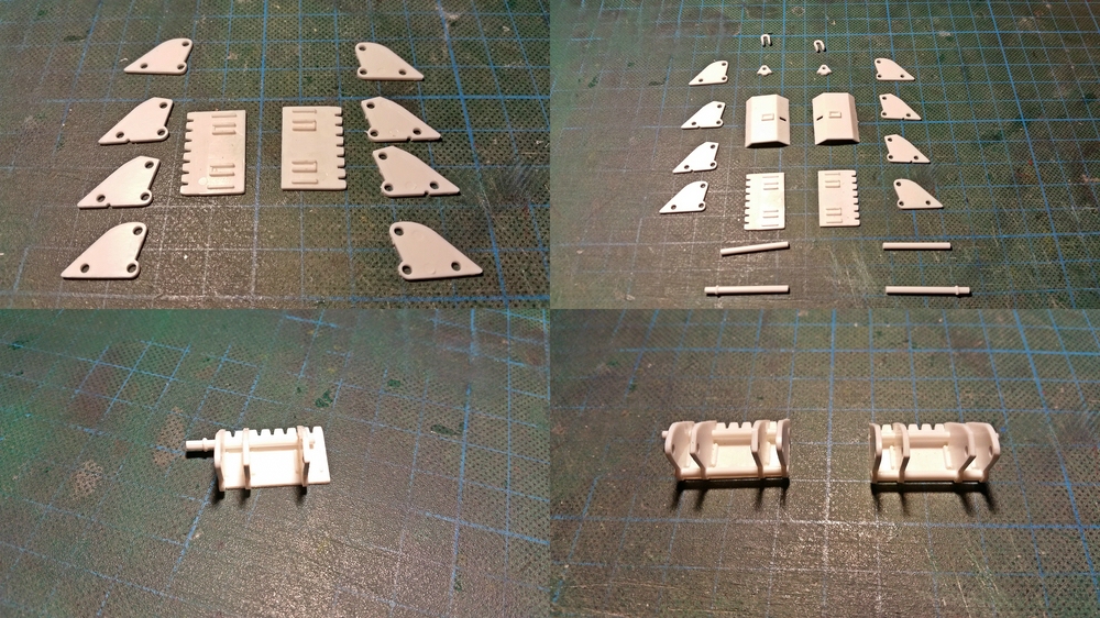Als nächstes habe ich mir die Bodenkrallen/Stützen vorgenommen, zu nächst nur ein paar Teile heraus getrennt, dann aber gemerkt das ich hier schon noch ein paar mehr brauchen, also auch zurecht gemacht. Dann wurden die ersten Teile, für die Bodenkrallen zusammen gebaut, die langen Querbolzen, helfen hier ungemein, um das alles auszurichten.