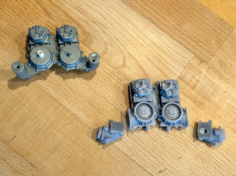 Und zwar sehen die Mengenteiler der K-Jetronic leider sehr billig und plastikhaft aus im Verhältnis zum ganzen Rest der so aufwendig und vorbildlich gestalteten Motoren.