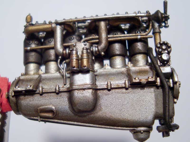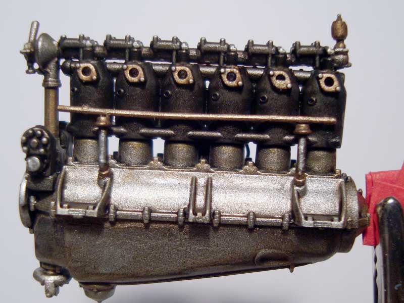 Nach dem Zusammenbau wurden gewisse Teile sehr frei interpretiert mit Messing- und Bronzefarbtönen per Pinsel hervorgehoben, ehe der ganze Bauteil diverse Washings mit Braun, Schwarz und ein wenig Dunkelgrün erhielt.