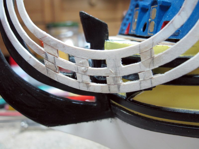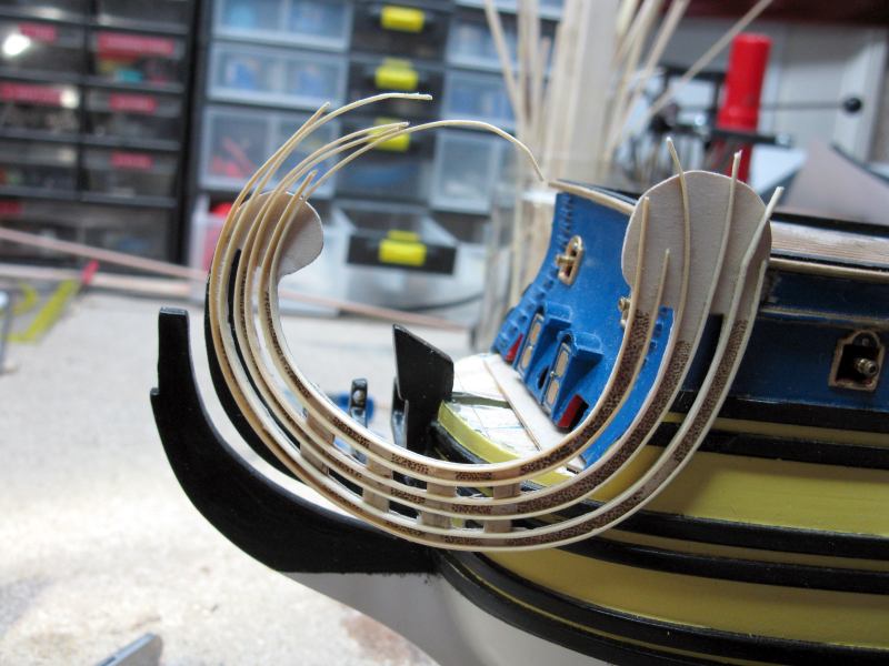 Zunächst mal mussten die Spanten zwischen den Regeln wieder so verschoben werden, dass sie mit den Galionsregeln fluchten. Komisch, wenn man das macht,
