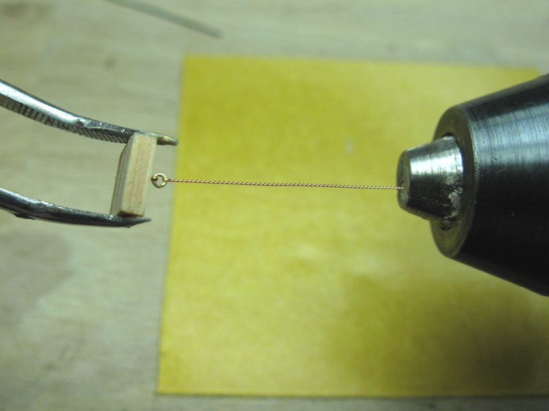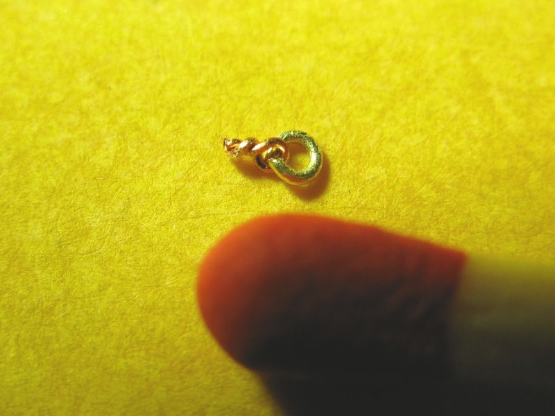 Kannst du für das Tau außen den Draht verzwirbeln, dann die Öse am Ende anknipsen und den Draht durch den Ring stecken und um sich selbst wickeln? Oder meinst du, dass es auffällt, dass es kein Knoten ist? Die Variante mit der echten Schnur sieht klumpig aus![]()