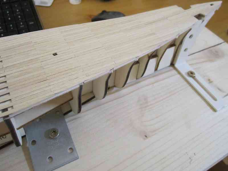 denkt Ihr beim Beplanken dran, daß um die Aufbauten, Barbetten usw. eingetlich Leibhölzer herum kommen? Die Planken stoßen eigentlich nie direkt stumpf an Decksaufbauten