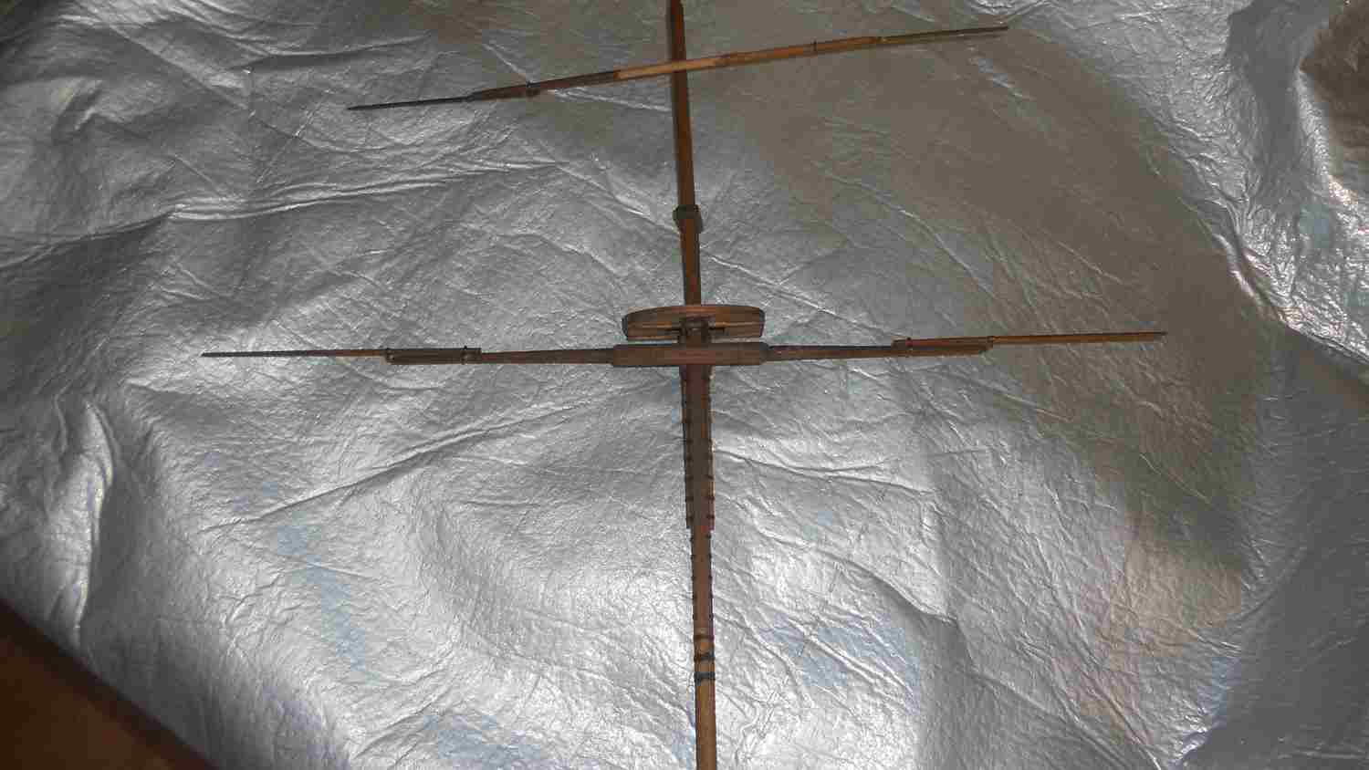 Fockmast bis Krähen Nest Höhe noch ohne Brahm und Royal Stänge.(Hoffe ich) die ausgefahrenen Leesegel Spiere