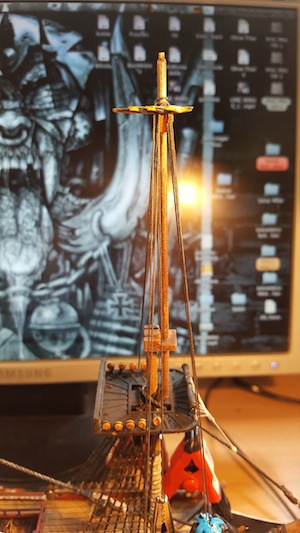 Die Rahen werden natürlich nochmal mit Farbe behandelt...