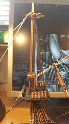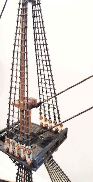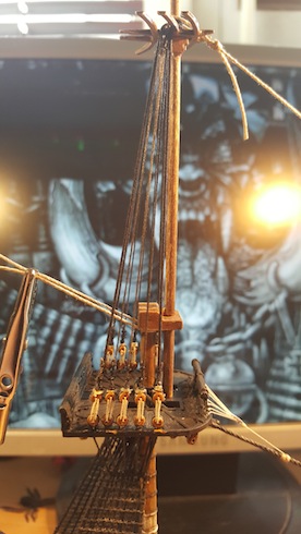 und habe dann doch wieder die Ätzteile von Krick verwendet und die ersten drei Rahen mit Laufstagen versehen.