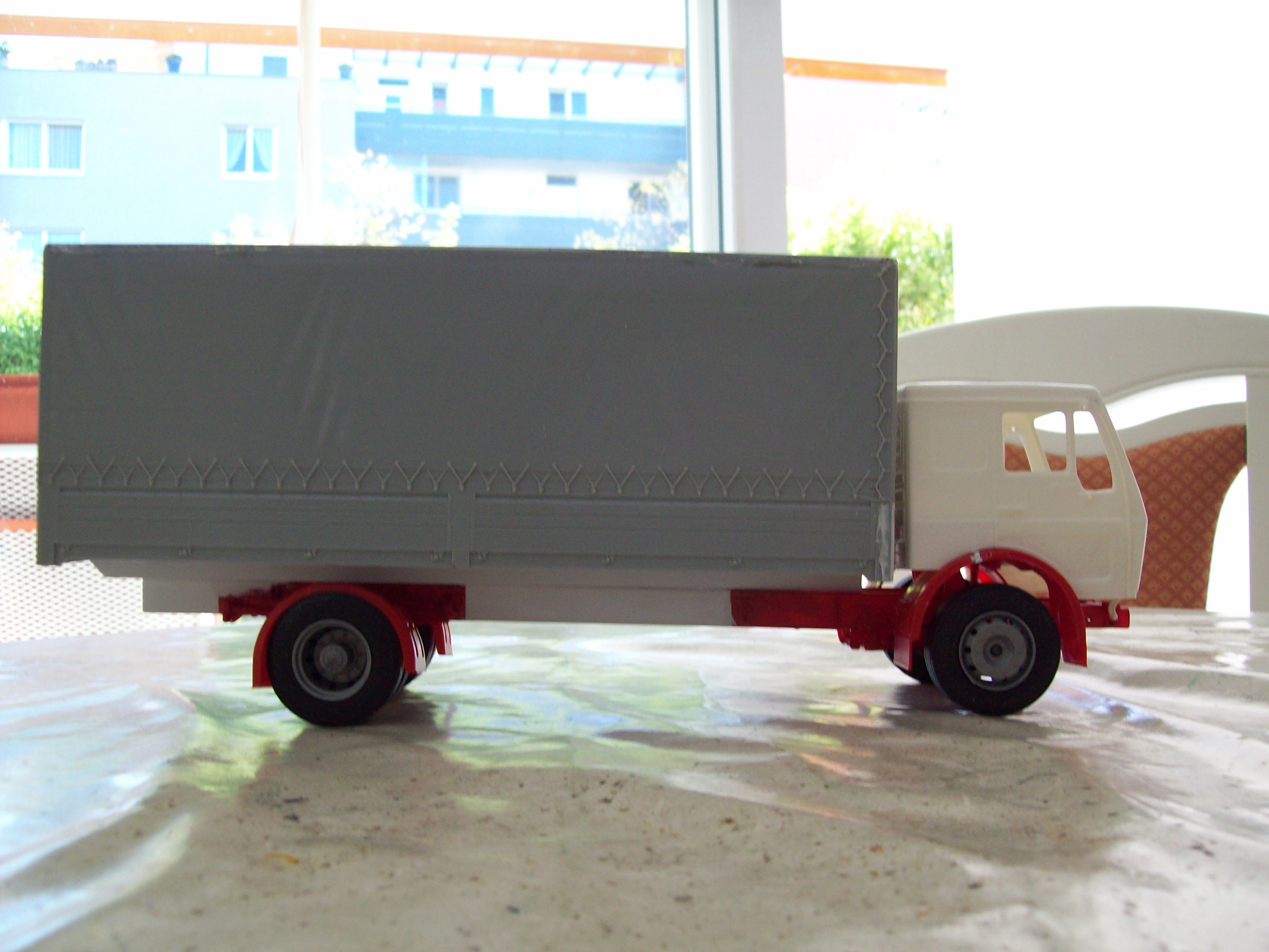 Grundmodell ist der berühmte 1628S mit langem Haus. Ursprünglich wollte ich den Motorwagen mit der Italeri-Pritsche versehen und die geringfügige Überlänge in Kauf nehmen. Nachdem ich den Rohbau (siehe erste Bilder) dann gesehen habe, war klar: geht gar nicht. Also werde ich wohl nicht nur den Hänger fast komplett aus Evergreen fertigen, sondern auch den vorderen Aufbau.