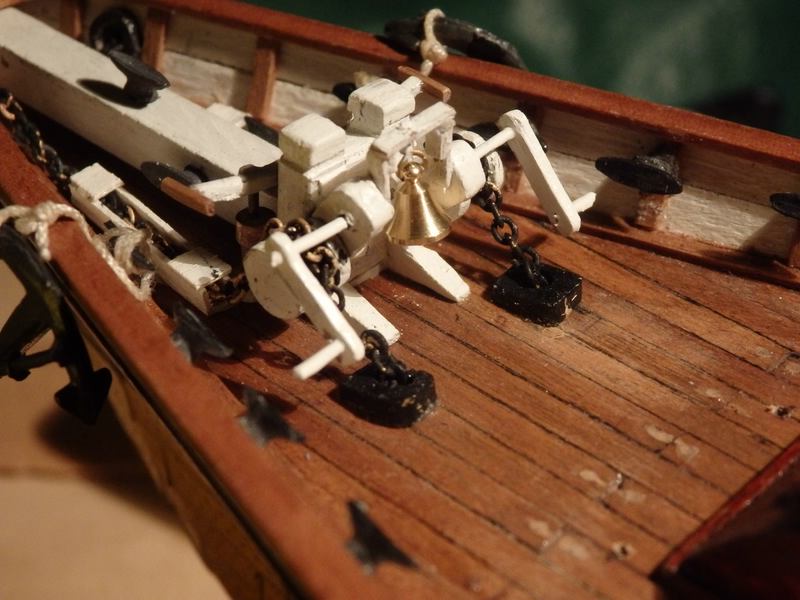 Die Pumpen/Ankerkettenfrage: Ich meine, dass - wenn überhaupt- der "Arm" vor den Knechten der Spritbeting verlief - und mit "Schweinsfüßen" an den Kettentrommeln ansetzte - wenn es um das Kettenheben ging. Schau da mal das "größere" Ding auf der Cutty Sark oder der CW Morgan an.
