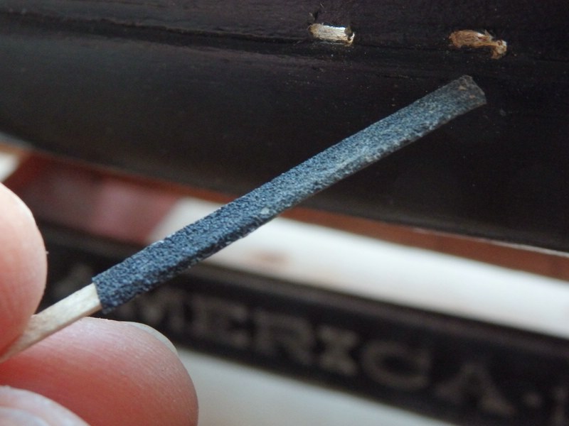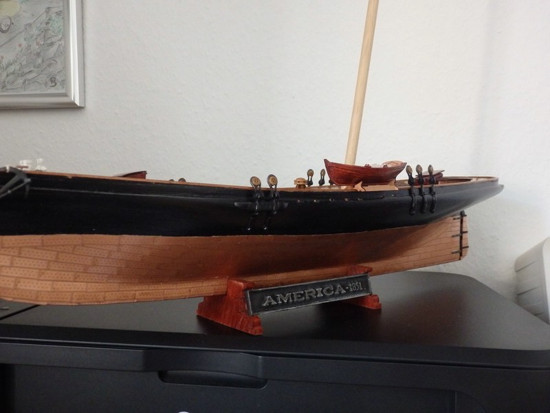 Real ist es so, dass die "alte" America sehr überzeugend den Hüftschwung hat- die erste Planke ist relativ schwach, aber die zweite ist dann schon fülliger und geht in den Rumpf über. Drum können dort nicht einfach solche Schlitze gewesen sein, wie auf dem sehr viel später gemachten Photo.