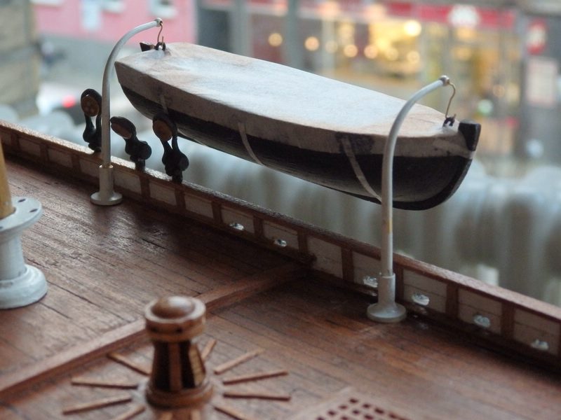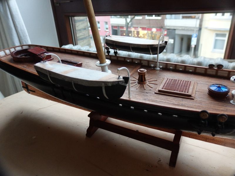 Hallo Bibi, schön dass du wieder an Bord bist. Dein Hinweis bestätigt meine Recherche, und ich werde die Davits entsprechend montieren. Ob ich auch die Boote nehme, weiß ich noch nicht, denn ich glaube, die Originalboote waren länger, relativ schmal und niedrig und schwarz. Insbesondere das zweite Boot ist mir etwas zu plump für eine Yacht. Evtl. muss ich mir also demnächst ein anderes Modell suchen, dass besser zu den Booten passt ;) .