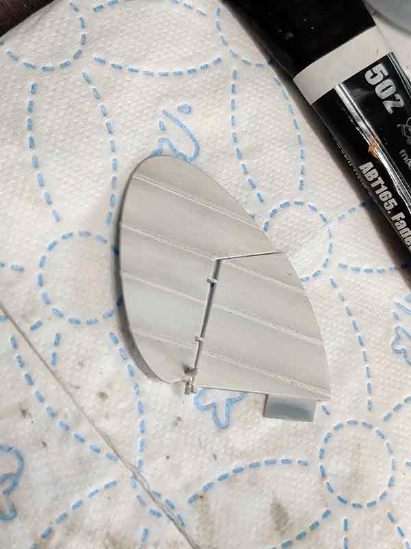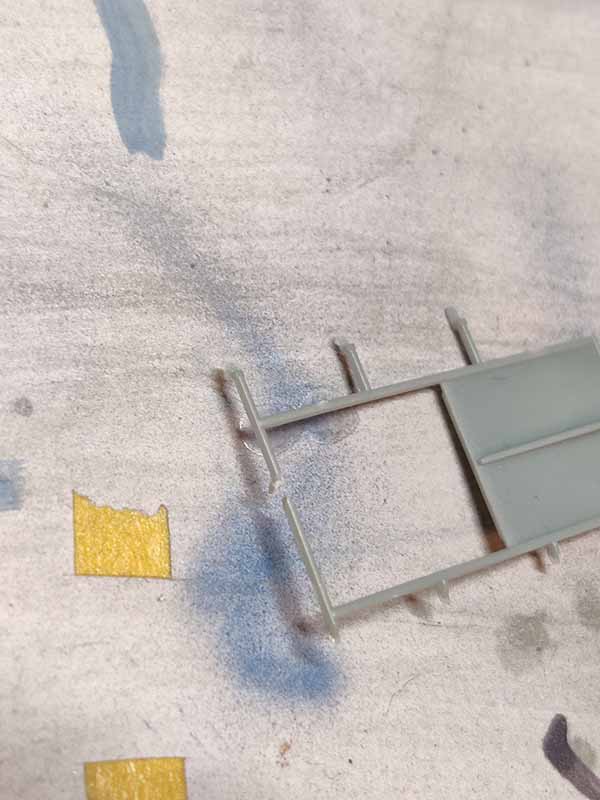 Sowohl beim Radiatordeckel als auch beim Fahrwerk möchte ich einiges "chippen" deshalb bemale ich die Teile in einem Zug. Zunächst grundiert...