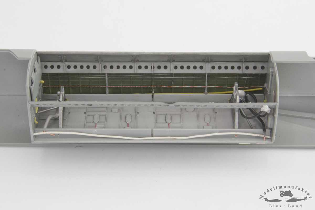 Lackiert wurde der Schacht mit Tamiya xf-19, die Innenstruktur des Rumpfes mit einem Rest einer Grünmischung.