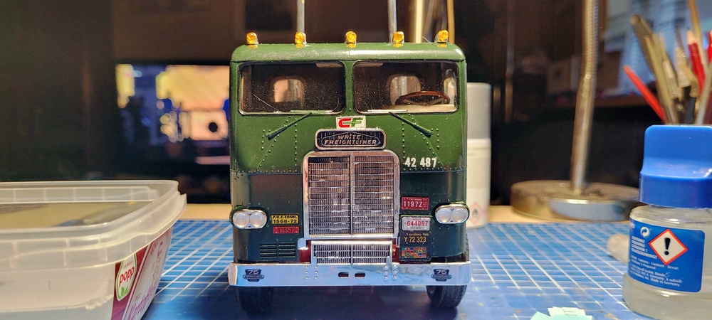 . Klar, das würde etwas zusätzliche Arbeit bedeuten, aber das beste an diesem Set finde ich dass da auch eine Freightliner-Emblem dabei ist ohne White. Damit könnte man also auch einen echten Freightliner darstellen, einer aus der Frühzeit