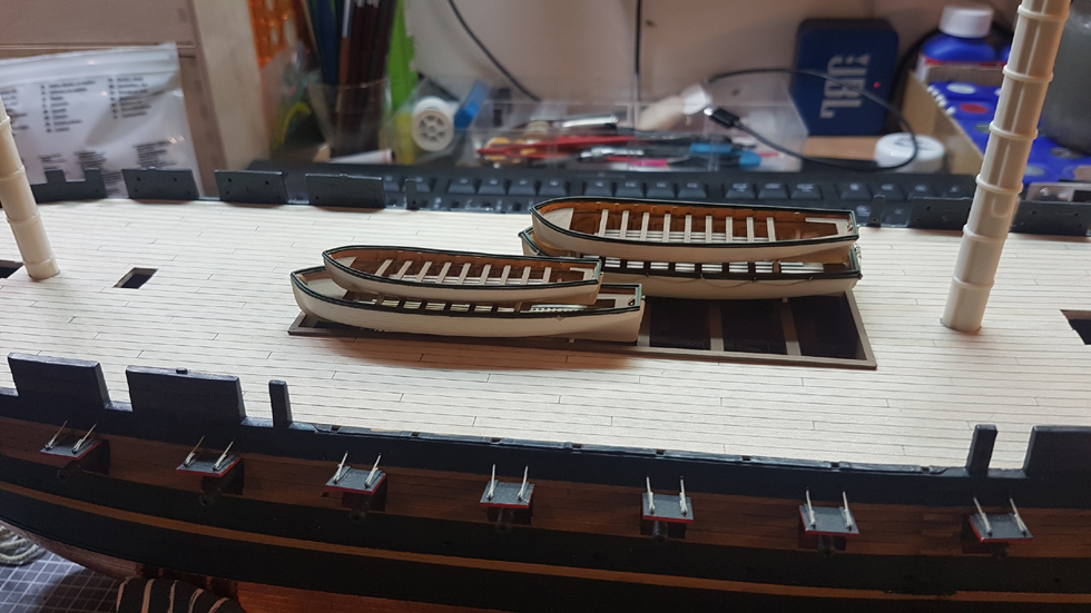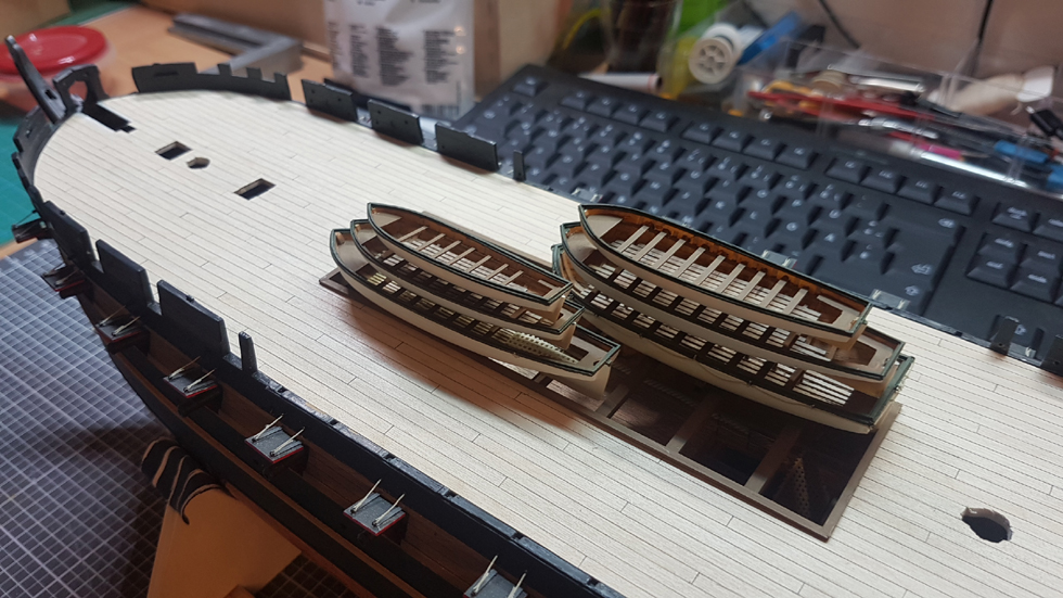 Und dann mal alle Boote in der richtigen Reihenfolge auf die Kuhl gestapelt: