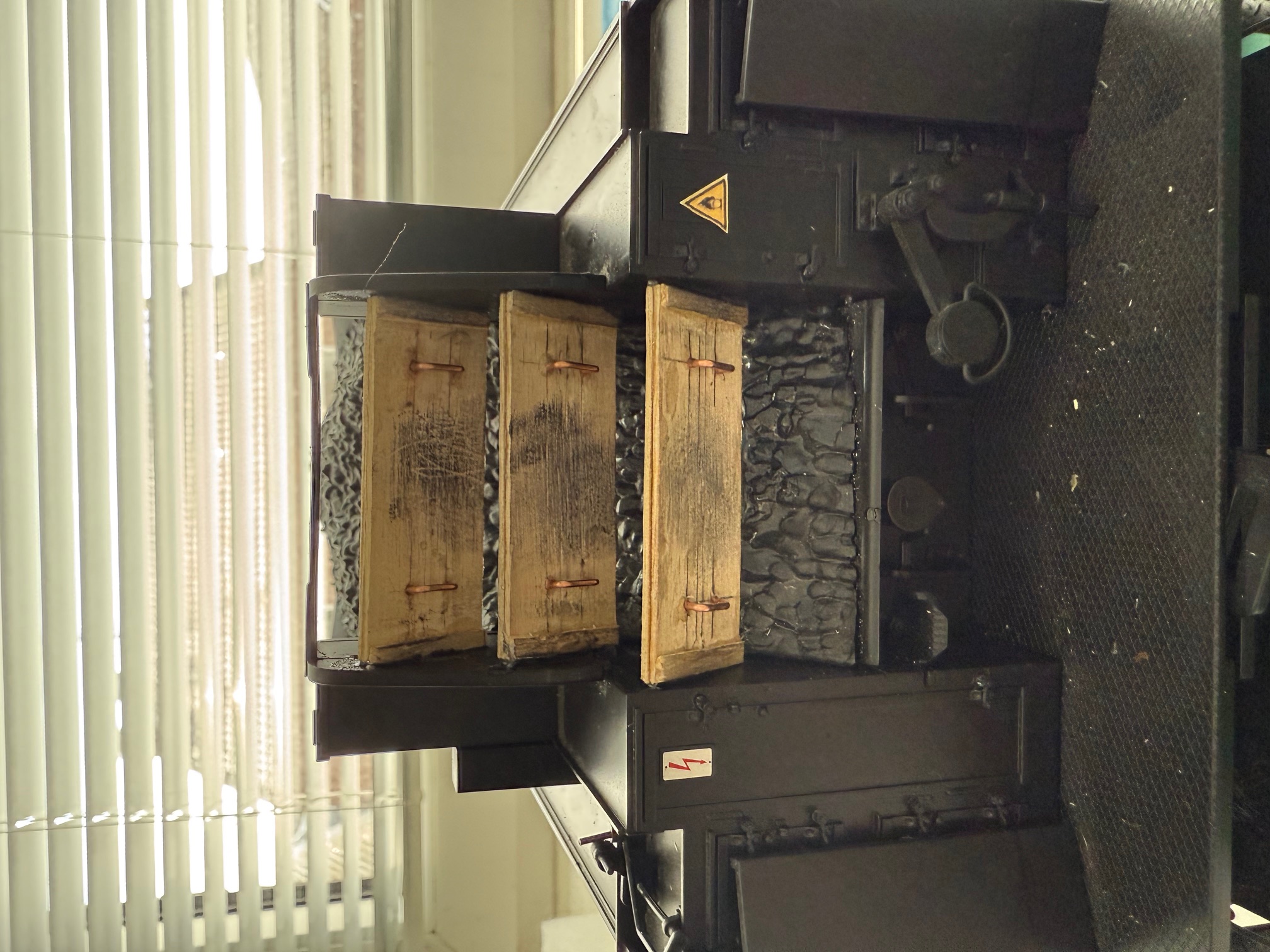 Puuh, den großen Kessel nochmal anzuheben, hatte ich nicht vorgehabt. Die beiden Fußtritte auf beiden Seiten an der Steuerung müssen auch noch befestigt werden. Nachher.