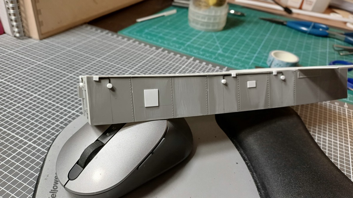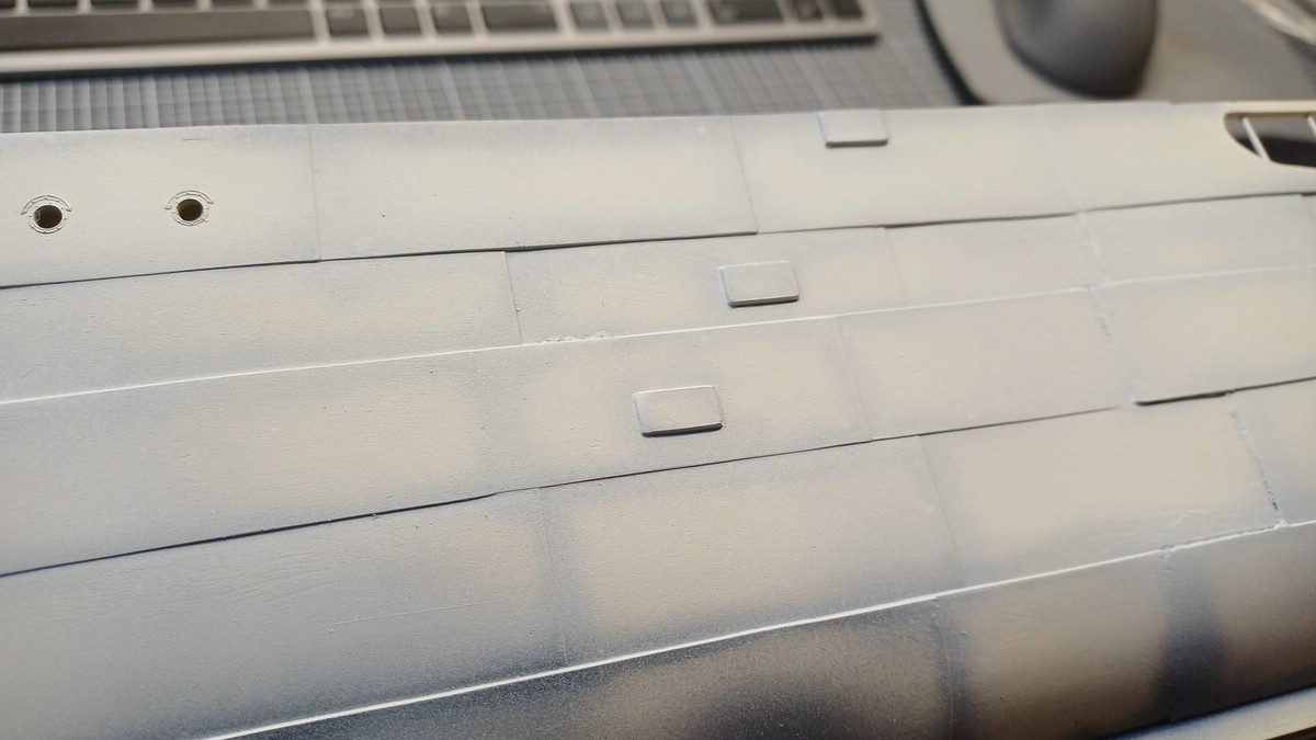 Weil der Rumpf schon auf dem Tisch lag, habe ich die paar Stellen, die mir noch aufgefallen waren gleich nochmal gespachtelt.