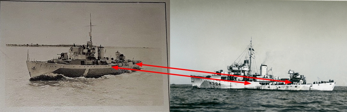 Ist es denn sicher, dass die Postkarte tatsächlich HMCS Thorlock zeigt und nicht ein typgleiches Schiff? Es steht zwar drunter, aber das hat, zumal in Kriegszeiten, nicht unbedingt etwas zu sagen. Eine Rumpfnummer erkenne ich da jedenfalls nicht, und die hätte der Zensor vermutlich auch unkenntlich gemacht. Es war Krieg und entsprechend streng wurden Geheimhaltung und Zensur gehandhabt.