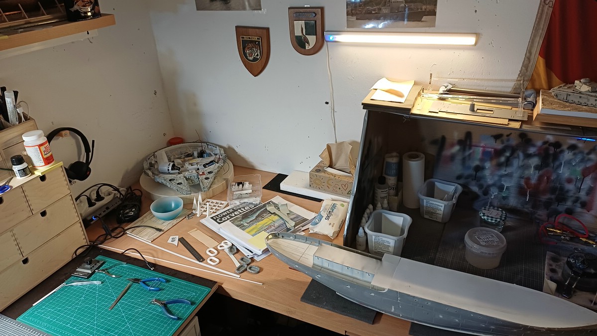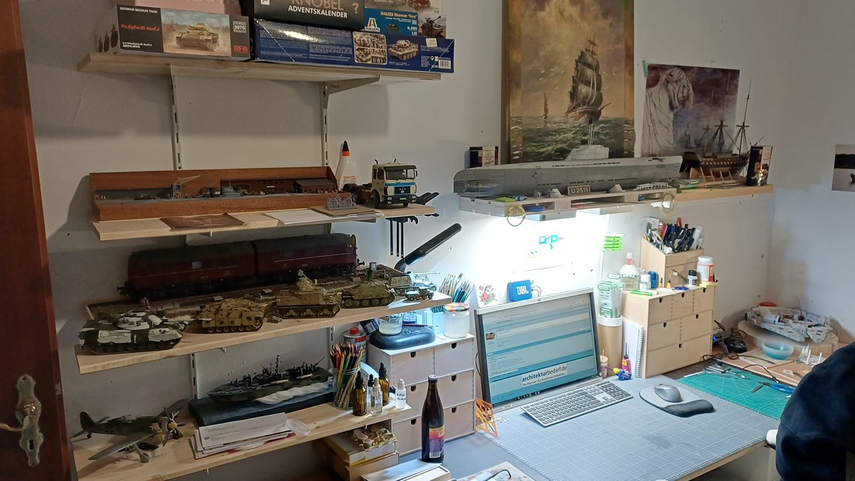 Gegen Deinen Arbeitsraum bin ich blutiger Anfänger (was sogar stimmt da ich ja erst seit einem Jahr wieder Modelle baue). ;) Das ist alles was ich meinem Büro daheim an Arbeitsplatz habe