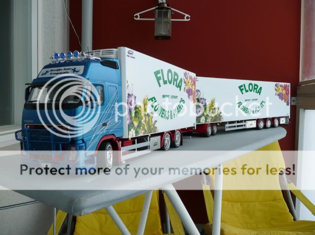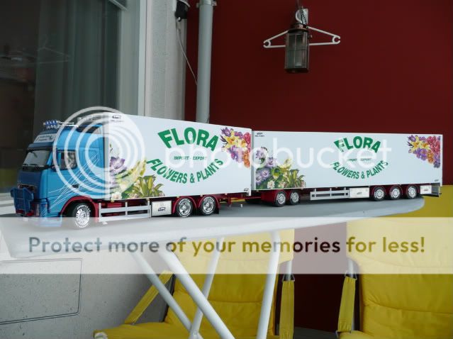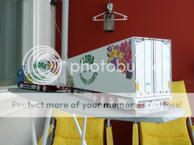 This model has a starting point for action Italeri 3821 Volvo FH 16 Globetrotter XL and a trailer Italeri 3813 Reefer Trailer. Truck tires are the KFS-low-profile tires and trailer tires are derived from the model of Emek.